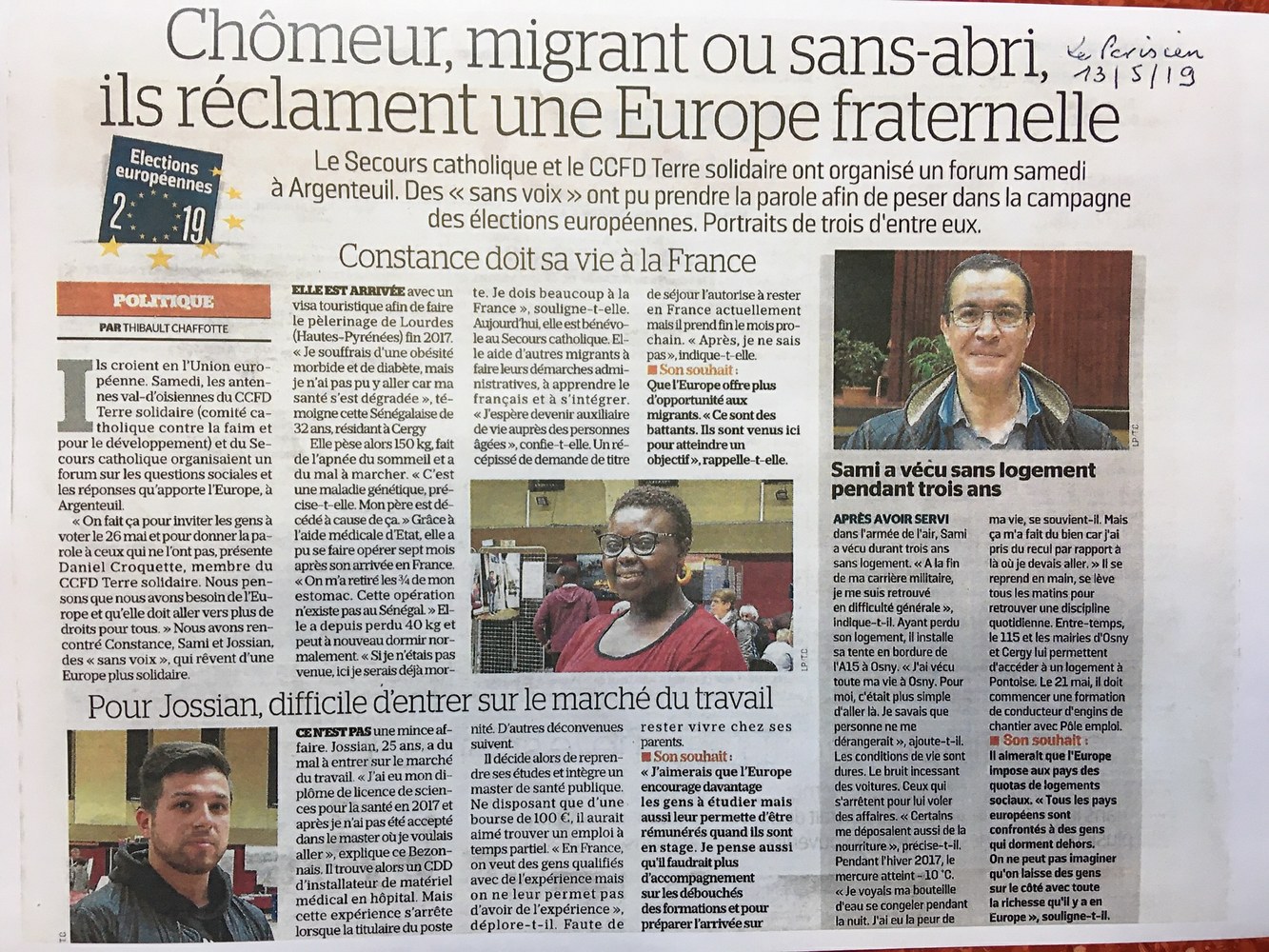 Le CCFD-Terre Solidaire et le Secours Catholique ont organisé le 11 Mai à Argenteuil un forum pour une Europe fraternelle, en collaboration avec d'autres associations dont l'ACI 95.