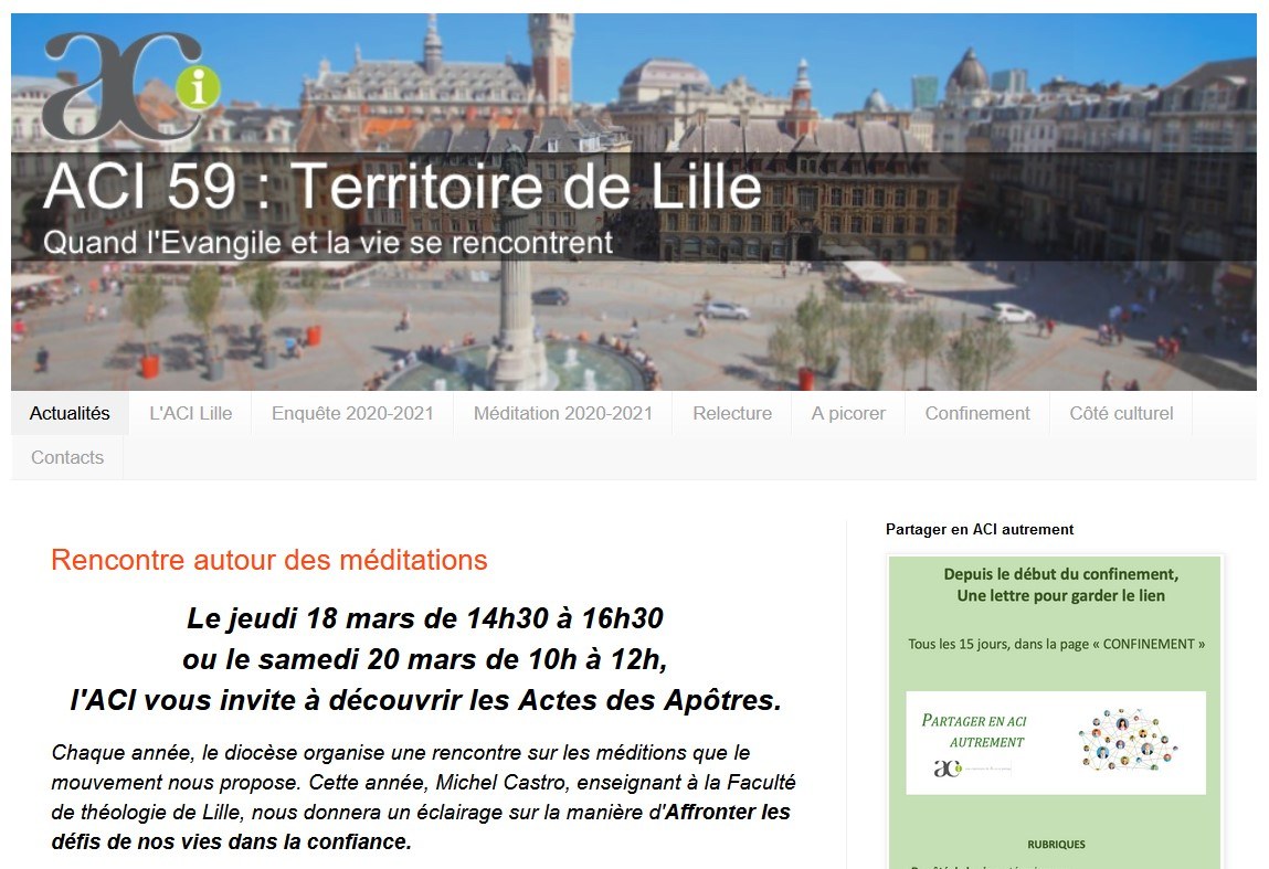 C’est une version simplifiée d’un site internet, accessible librement à tous ceux qui le souhaitent et ont le lien. Le blog de l’ACI diocésaine nous redit ce qu’est la révision de vie, l’enquête, la relecture, les méditations, il nous donne les informations du mouvement diocésain, c’est la vie du mouvement et des fédérations.
