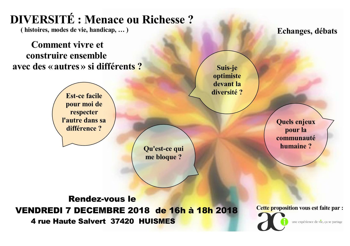 Agora à Huismes 7 décembre - DIVERSITÉ : Menace ou Richesse ?