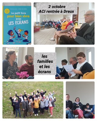 C'est à 17, que nous avons ainsi échangé sur le thème de « nos familles et les écrans ». Un rapide questionnaire a permis à chacun de se positionner sur sa propre relation aux écrans, prise de conscience pour certains de leur quasi-addiction, pour d'autres de leurs difficultés récurentes. Les témoignages d'une jeune maman qui gère le contrôle parental, d'une grand-mère aux expériences diverses selon les familles et les âges, d'une senior dont la famille éloignée géographiquement se réunit très régulièrement à distance, d'une senior en activité entre télétravail et autres occupations sur écran, ces témoignages ont ouvert le débat, l'élargissant aux avantages, inconvénients, difficultés pour la famille, les enfants, les seniors... Deux ado présents s'y sont exprimés. Ensuite en sous-groupe, nous avons essayé de discerner, dans ce vécu, nos relations à nous-mêmes (gratification de gagner à des jeux, mais risque de dépendance), aux autres (ici communication facilitée, mais ailleurs facteur d'isolement), à Dieu (outre les prières disponibles, favoriser notre mission au service des autres ou au contraire de la déshumanisation). Un exposé a donné des pistes pour améliorer nos habitudes, favoriser une utilisation raisonnable et raisonnée des écrans.