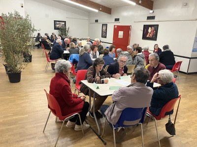 Le concours d’un animateur expérimenté a ensuite facilité des échanges nourris avec la salle et par l’intermédiaire d’ateliers très suivis. Chacun s’est interrogé sur sa manière d’accueillir l’autre, qu’il soit migrant ou étranger, sur sa façon d’oser ne serait-ce qu’évoquer ces sujets de migrations dans nos familles ou nos réseaux de vie… ou bien encore de considérer le migrant , être humain et lui aussi personne aimée de Dieu.