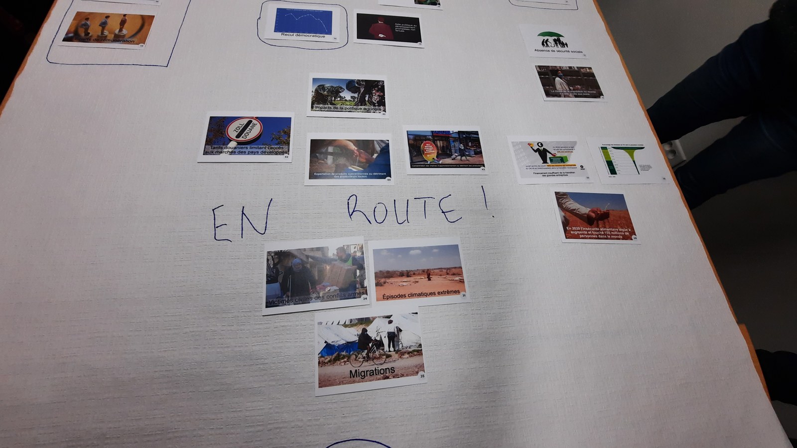 L'après-midi, 4 membres rennais de l'ONG Oxfam ont animé pour nous la fresque des inégalités. La fresque des inégalités est un atelier d'intelligence collective de 3 h pour un monde juste et soutenable. Comme pour la fesque du climat, ce format permet d'aborder le sujet de manière ludique, collaborative, visuelle, créative, simple et rigoureuse. Répartis en petits groupes de 6 personnes, nous avons pu acquérir des connaissances, réfléchir aux mécanismes à l'œuvre et commencer à pointer les leviers possibles pour agir sur les causes. La richesse des échanges pendant et à l'issue de ces ateliers est un signe de la confiance partagée entre membres du mouvement dans le respect de la parole de chacun et de nos cheminements personnels et collectifs.