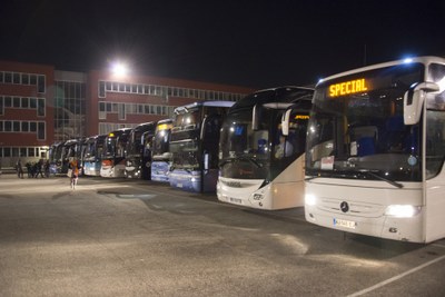12 autocars pour ramener tout le monde à son hébergement !