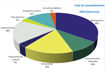 Le coût du rassemblement (hors transport d’acheminement) est de 398 € par personne. Voici la répartition du coût et des recettes :
